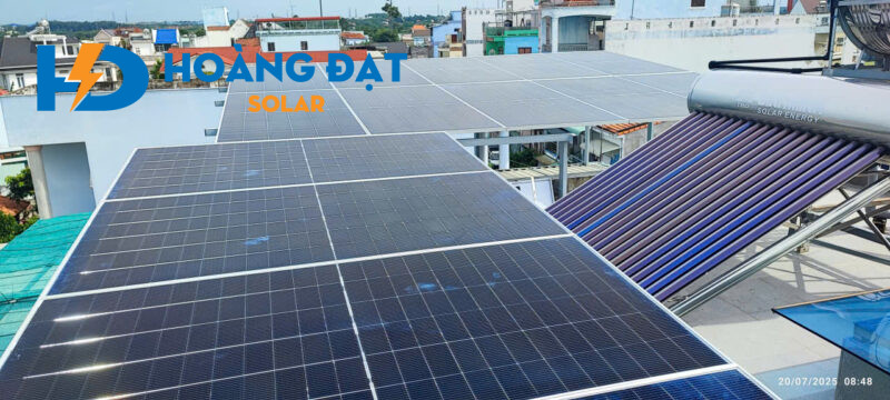 Dự án lắp điện mặt trời tại Tân Uyên cho Quán Lẩu bò Bờ Sông Quán – Hệ hòa lưới 12kWp lưu trữ 28kWh của Hoàng Đạt Solar